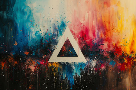 Layered triangles in vibrant colors create an abstract design that captures attention. The blending hues evoke a sense of creativity and modernity, enhancing any artistic space.