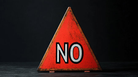 Red triangular sign with the word no against dark background, caution and warning concept