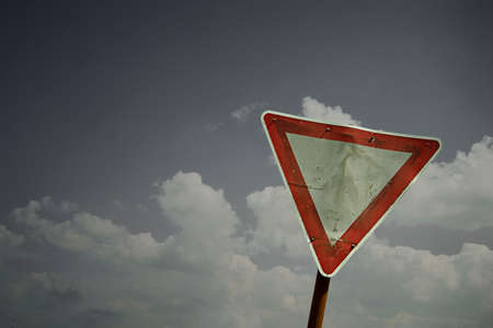 Blank Give Way Sign against Blue Sky Background
