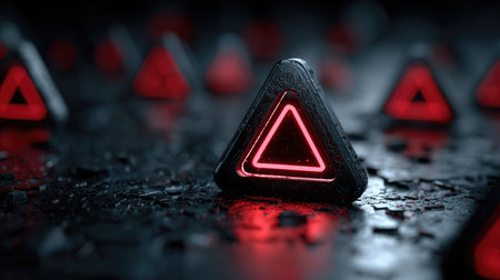 This image features striking red neon triangle shapes set against a dark textured surface, creating a captivating and mysterious atmosphere perfect for modern design concepts.