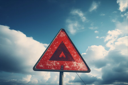 Standing Strong: A Triangular Warning Sign Grabs the Sky's Attention!