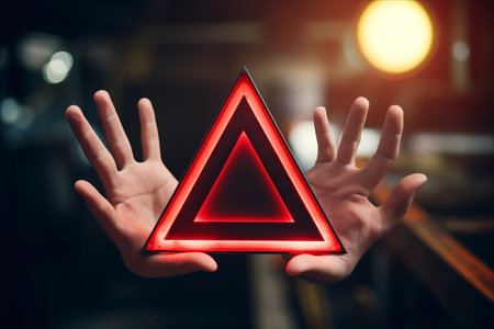 Significant Risk Alert: Human Hand Signals Maintenance Error with Red Triangle Warning on a 3:2 AR Image