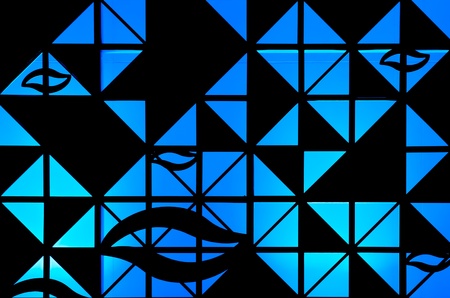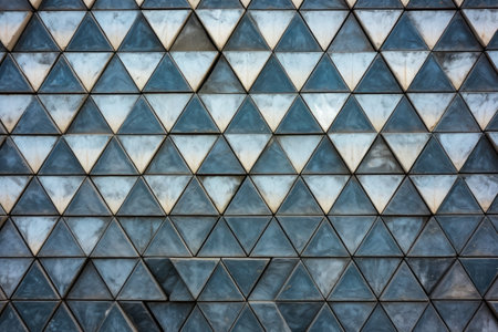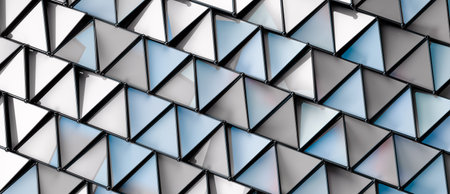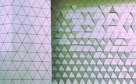 A metal wall made of many triangles. Triangles with sharp corners and gradient transitions.