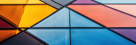 Abstract Geometric Glass Panel Design Modern Colorful Architecture Background red art wall blue