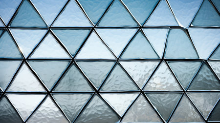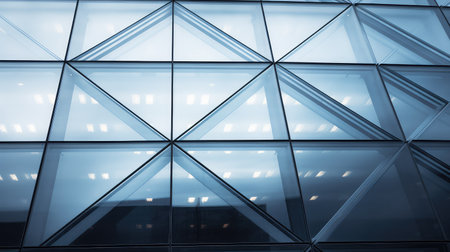 This abstract image features a modern geometric wall made of triangular panels. The sleek blue tones and reflective surfaces create a visually striking design perfect for various creative projects.
