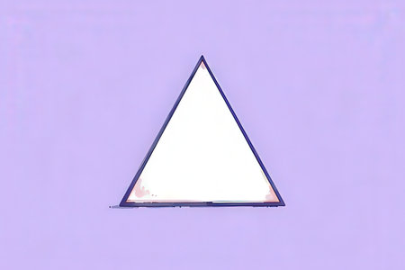 White triangle on a purple background, 3d rendering. Computer digital drawing.