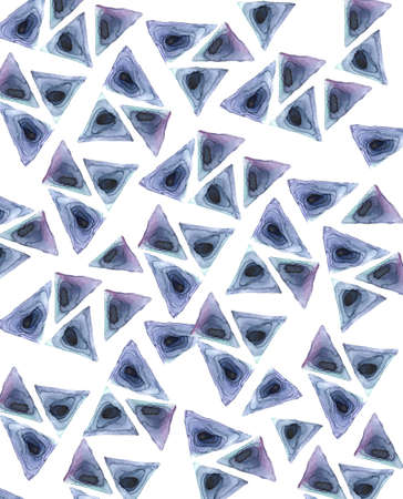 Abstract geometric background with triangles . Texture watercolor paint. White background Splashes blue Watercolor