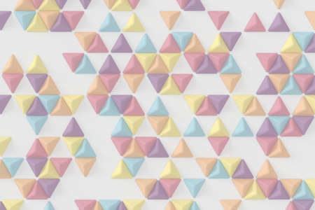 Abstract geometric pattern or background made of chaotic triangle surface polygons. 3d rendering of realistic multicolor backdrop or wallpaper