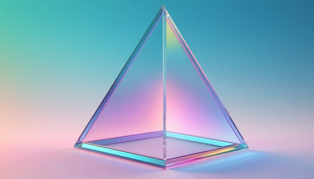 Abstract Glass Pyramid Iridescent Rainbow Colors Modern Design Digital Art 3d blue teal pink shape