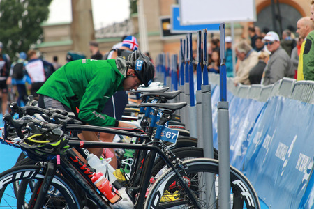 STOCKHOLM - AUGUST 23, 2014: Bruno Matheus preparing before the triathlon race the ITU World Triathlon series event August 23, 2014 in Stockholm, Sweden