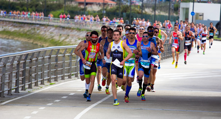 AVILES, SPAIN - APRIL May 2014: Participants in the National Duathlon Championships held in the city of Aviles, Spain, on Saturday, April 5, 2014.