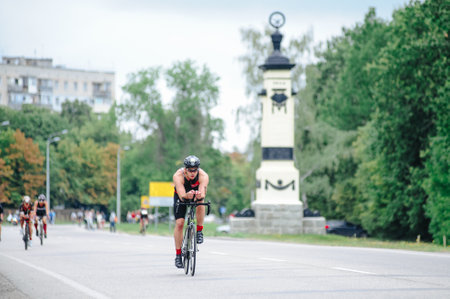 KHARKIV, UKRAINE - AUGUST 1, 2021: Athlet at the Iron Way Triathlon 2021 competitions.