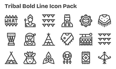 Set of 18 Bold Line-style icons themed around Tribal, crafted for seamless integration in apps and websites.