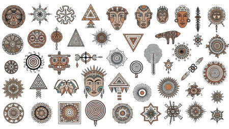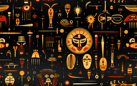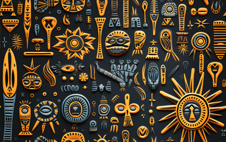 A tribal pattern that reveals hidden symbols and meanings through animation uncovering a rich narrative..