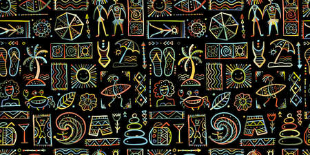 Summer Vibes. Art Background. Autherntic Style. Seamless Pattern for your design