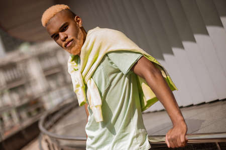 Image of a handsome young man posing on colored backgrounds wearing colorful trendy clothes. Concept about carefree, fashion and lifestyle