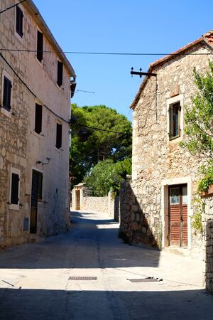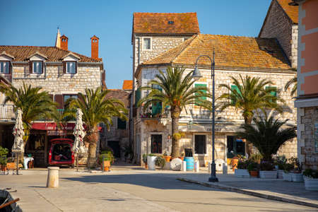 Stari Grad, Croatia - 28.03.2021: Old street without tourists in Stari Grad, Croatia