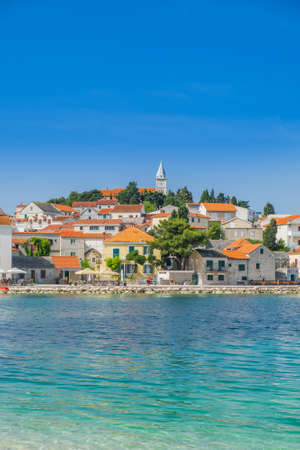 Charming coastal town of Primosten with red-roofed stone houses, a church tower