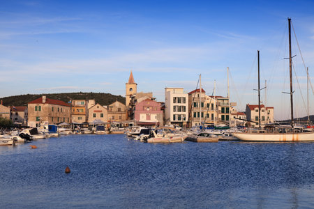 Old coastal town of Betina on Murter island in Dalmatia, Croatia. Adriatic seascape.