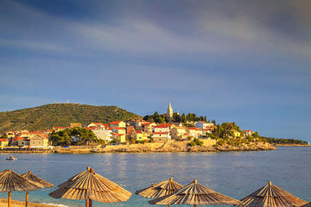 Primosten old town and adriatic beach in Croatia
