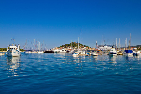 Marina with boats and sailboats, Adriatic tourist destination Murter, Croatia