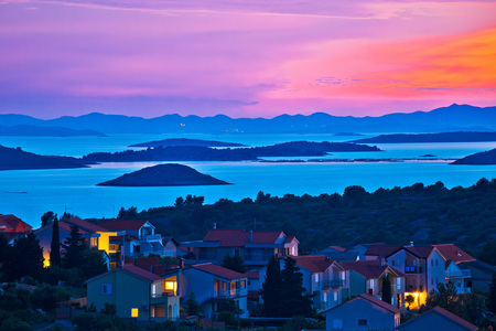 Archipelago of Murter island at sundown, Dalmatia, Croatia