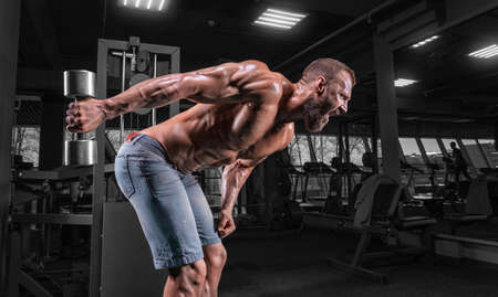 young, muscular man, bodybuilder working out in gym Fitness concept on healthy life, sports and gym
