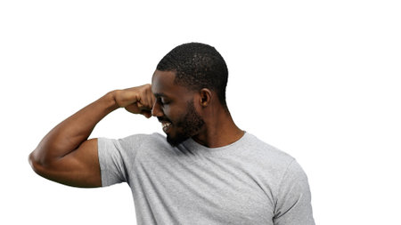 front view fit man showing bicep with copy space. Resolution and high quality beautiful photo