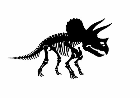 Dinosaur bone silhouette. This image shows a black silhouette of a dinosaur skeleton, also known as a fossil or prehistoric remains, highlighting its detailed bone structure. Vector clipart illustration design.