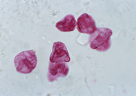 Apple pollen from a blossom in spring under the microscope
