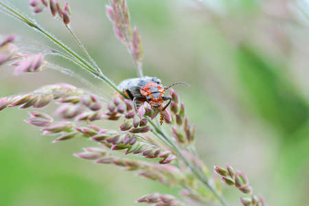 Soldier beetle in the green meadow, cantharis fusca, macro of insect, wildlife, natural environment