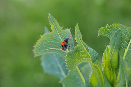 Gravedigger beetle on a plant in nature in Lower Saxony Germany.