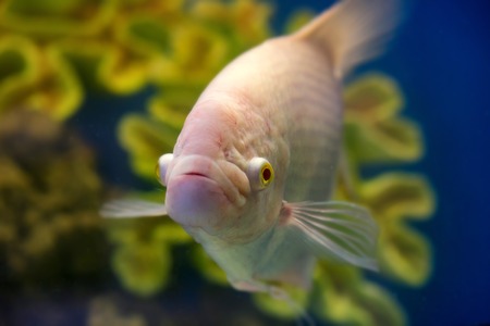 White Giant gourami fish (Osphronemus goramy) swimming in aquarium tank.