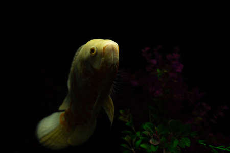 Beautiful tropical fish in an aquarium on a dark background, Thailand