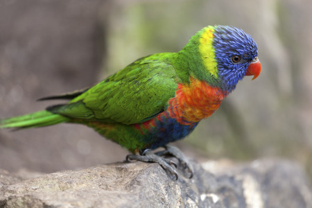 Colorful rainbow lorikeet Trichoglossus haematodus on a rock
