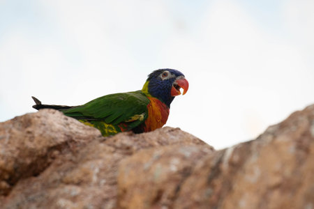 Rainbow Lorikeet sitting on a rock looking at the camera