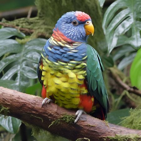 close-up of a rainbow lorikeet perched on a branch, created with generative ai