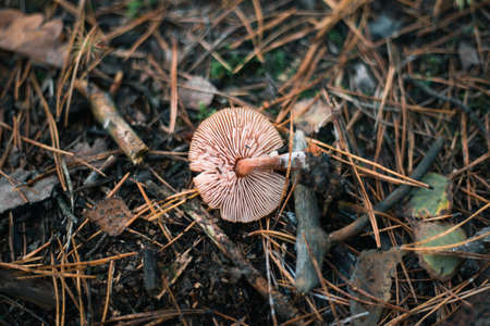 saffron milk cap - Lactarius deliciosus on autumn forest with pine needles