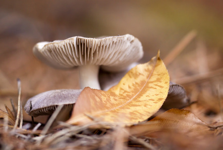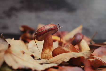 Mushroom in the autumn forest, close-up, shallow depth of field