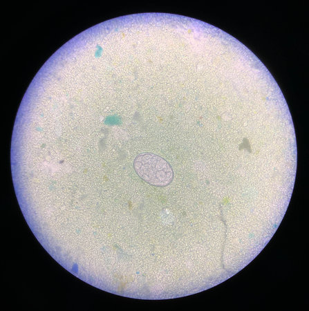 Egg of parasite in stool examition testing finding with microscope.