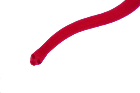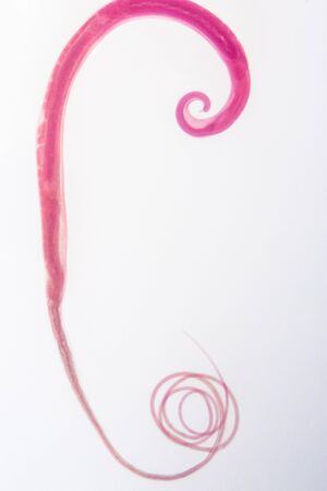 Microscopic view collection of adult free-living female Strongyloides stercoralis, a human pathogenic parasitic roundworm causing the disease strongyloidiasis.