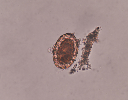 Parasite Ascaris lumbricoides egg in stool exam.