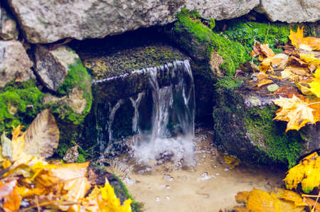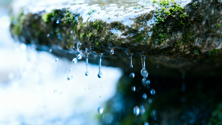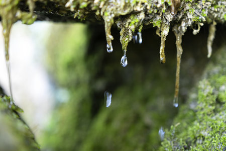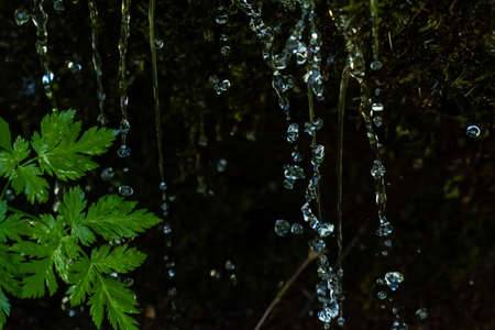 Drop by drop gushing from a small hole in a natural spring, concept of pure water