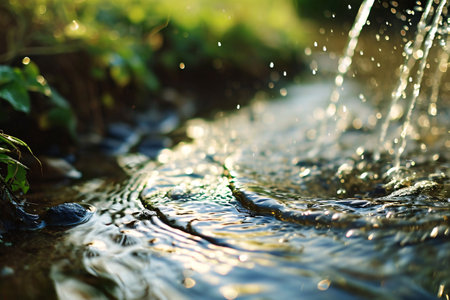 Water sustainability. Sustainable water source. World Water Day concept. Nature landscape of stream water. Freshwater protection and water conservation for a sustainable water source. Generative AI.