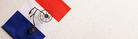Tour de France Cycling Race concept. toy bicycles with the flag of France on white background. copyspace. banner