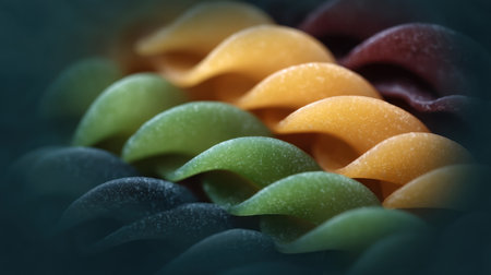 Colorful farfalle pasta with stripes creating a vibrant culinary display