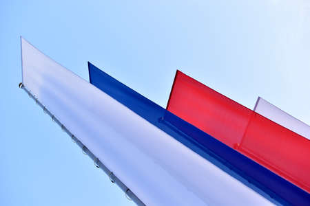 Russian wave flag. Fabric in colors of state flag of Russian Federation. White, blue and red stripes.