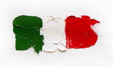 Painted flag of Italy. Italian tricolor, isolated. Abstract vivid green white red background, oil on canvas, creative design element with perfect texture, soft focus