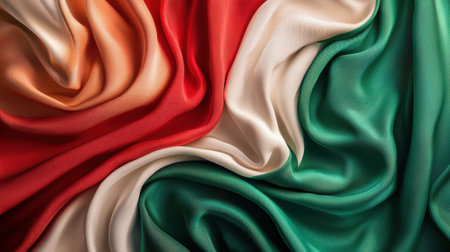 The tricolor flag is artfully displayed with rich fabrics in orange, white, and green. The luxurious textures create an inviting visual that celebrates national identity and pride.