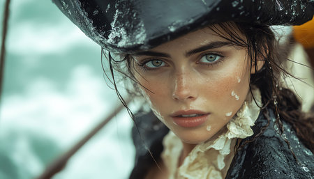 Mysterious pirate woman with intense gaze